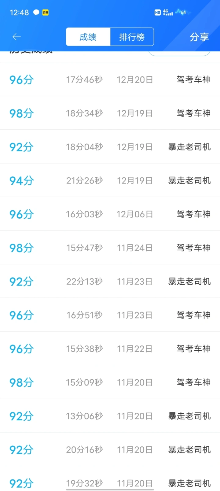 刚考过的科三,等下就立马考科四了,这样的成绩能不能过😜😜😜