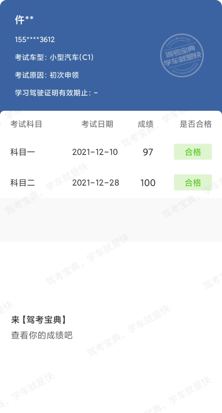 离驾照到手只有一步之遥啦!今天科目二满分💯通过