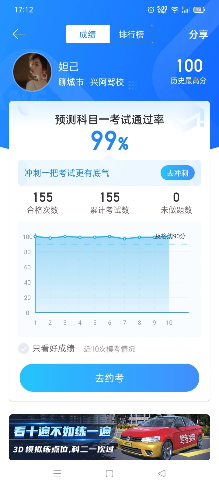 来分享我自己经验,科一理论大家一定要多刷题,反复的模拟训练,考试的时候都是原题,一定一定要多模拟☺️另外考试的时候千万千万不要紧张,一紧张就容易出错,放平心态去考试。 2022,加油🤗,让我们一起成功上岸👍