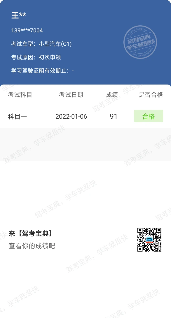 第一步稳稳的,真棒!都是驾考宝典的功劳。不管考多少分,过了科目一,也许今天运气好吧。不过我还得来,题目不算是很难的。只要用心去做就可以。谢谢驾考宝典。