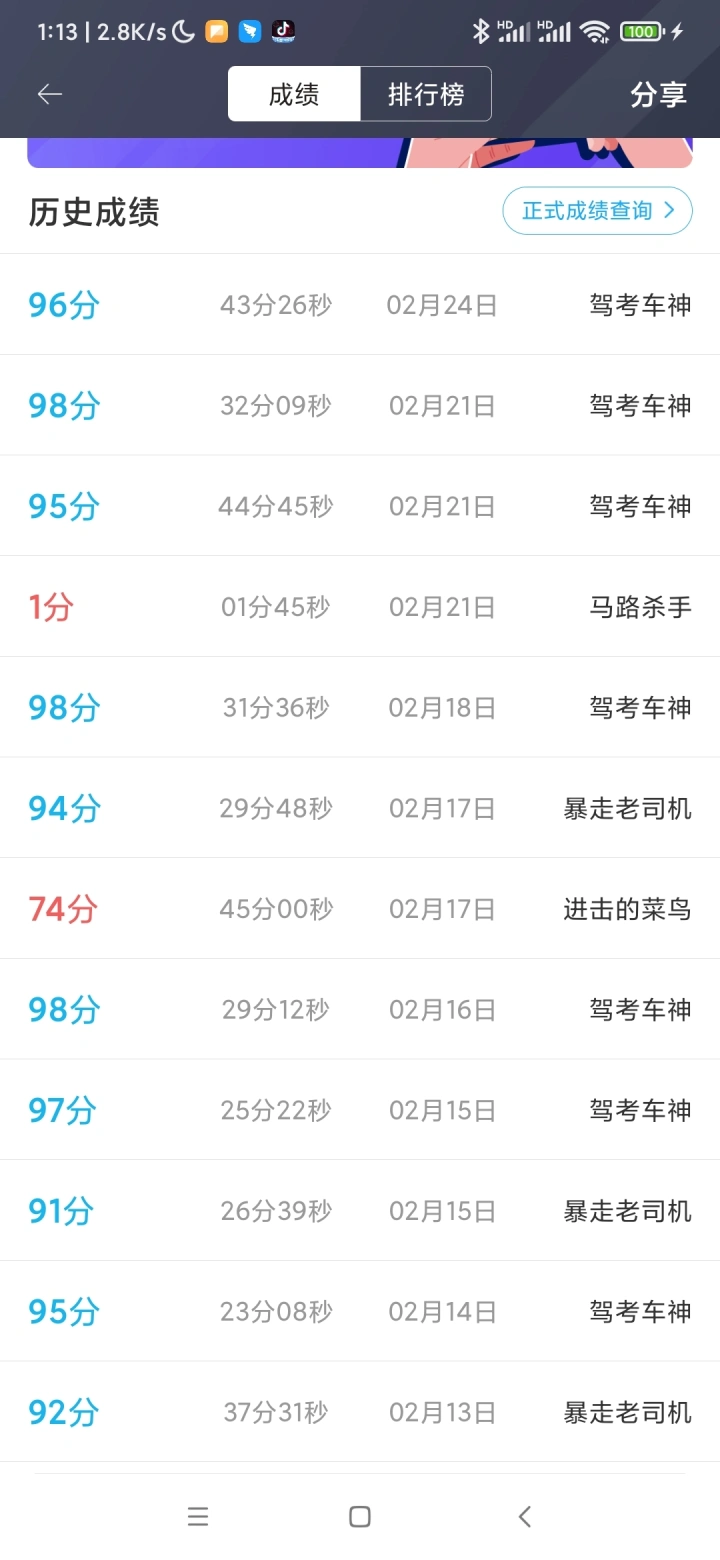 科一,想退出来,然后就只有一分,另外那个七十四属实没休息好,做了十五分钟,睡了半小时Д,今天考试加油。
