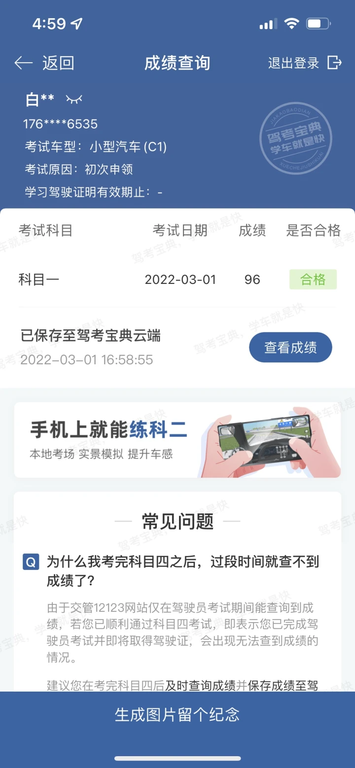 家人们 时隔一年终于去考了科一 去年4月份就报名了 一直懒得去 昨天怀着紧张的心情去考了哈哈哈 题特别简单!好多题都没考 据说科四才考 进去没十分钟就答完了但是不让交卷 后边的题都没看题直接选的答案哈哈哈哈 太简单了!期待科二一把过