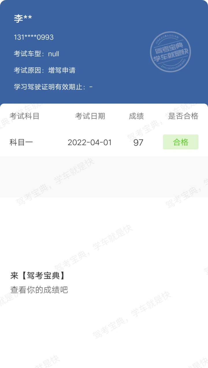 第一步稳稳的,真棒!都怕记不住想早点考 报名到考科一整整一个月…最后一周每天刷一遍模拟 还好过了