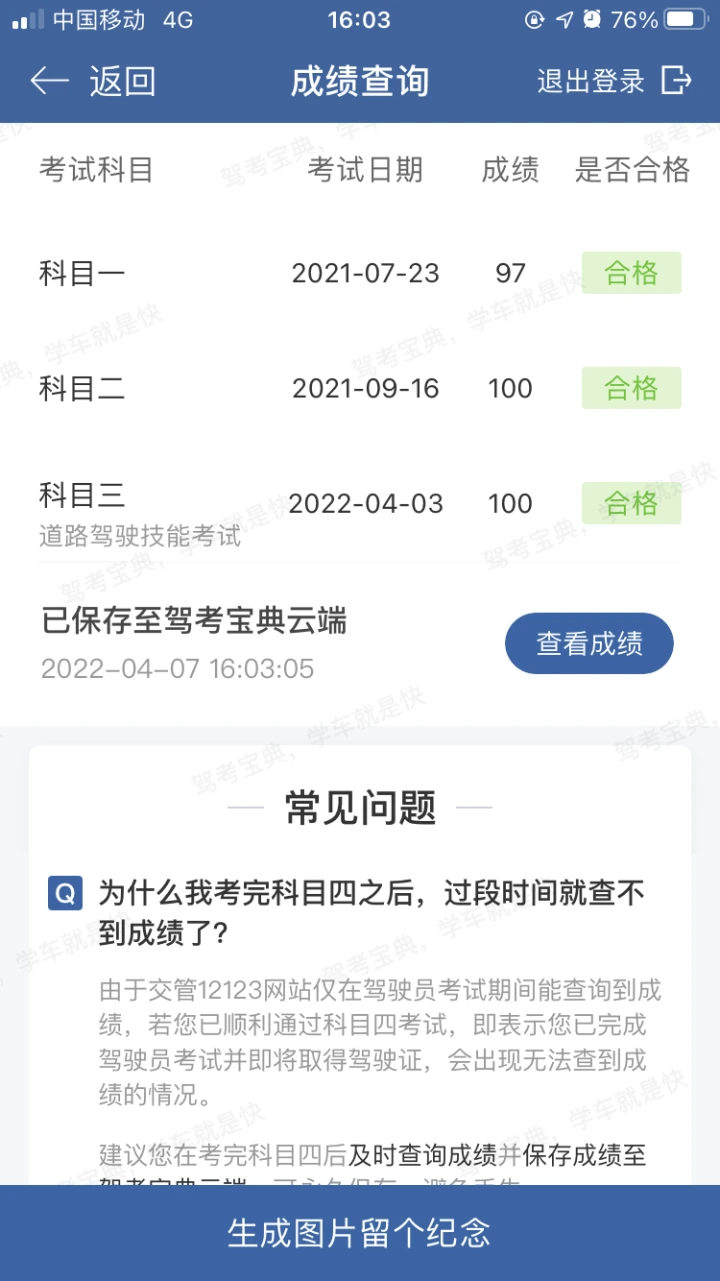 科三考过啦👏科一科二的时候是兴奋的心情,科三预约成功的时候,那几天真的是吃不好,睡不好,心里一直害怕考不过,考试当天,脚很软,整个人都不好了,直到进了考试车,脑子里面想的都是我要考过,细节一定要记住,稍微一个忘了,考试也就结束了。中途我一直在做深呼吸,喘大气,最后安全的把监考员载回了终点。播报成绩合格的时候,我还是有点不敢相信,我还傻傻的问监考员我考过了没,监考员说考过了,这一刻,我解脱了。手套脱下来都是水,我真的是紧张。虽然紧张,但我脑子里记得所有细节。