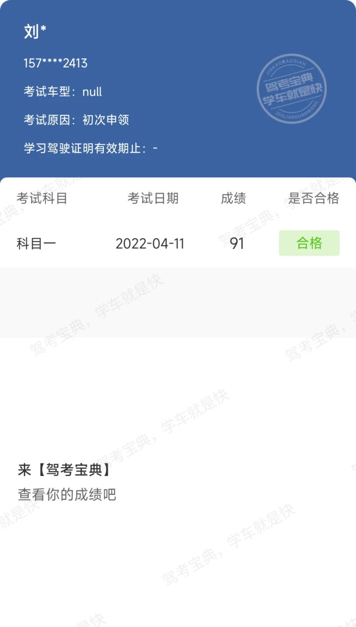 紧张的心,颤抖的手,终于过了,本来就是科目一在驾考新规还没到的时候就我有信心可以过了,但是更新之后就没有信心,然后预约之后一次就过,只要不紧张,胆大心细。大家都可以过