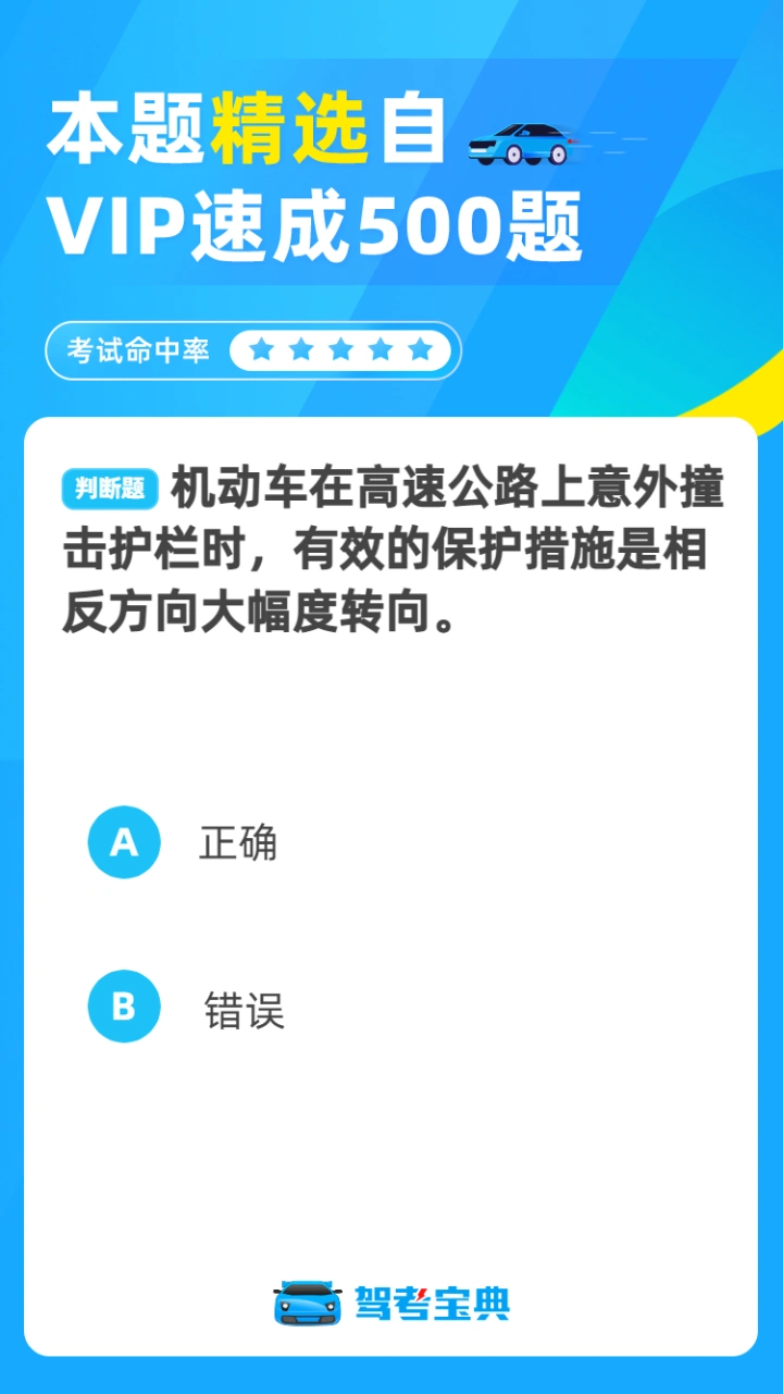 正确答案:B。 VIP专属解析:任何情况下,大幅度猛打方向都可能会翻车。所以选错。 查看链接