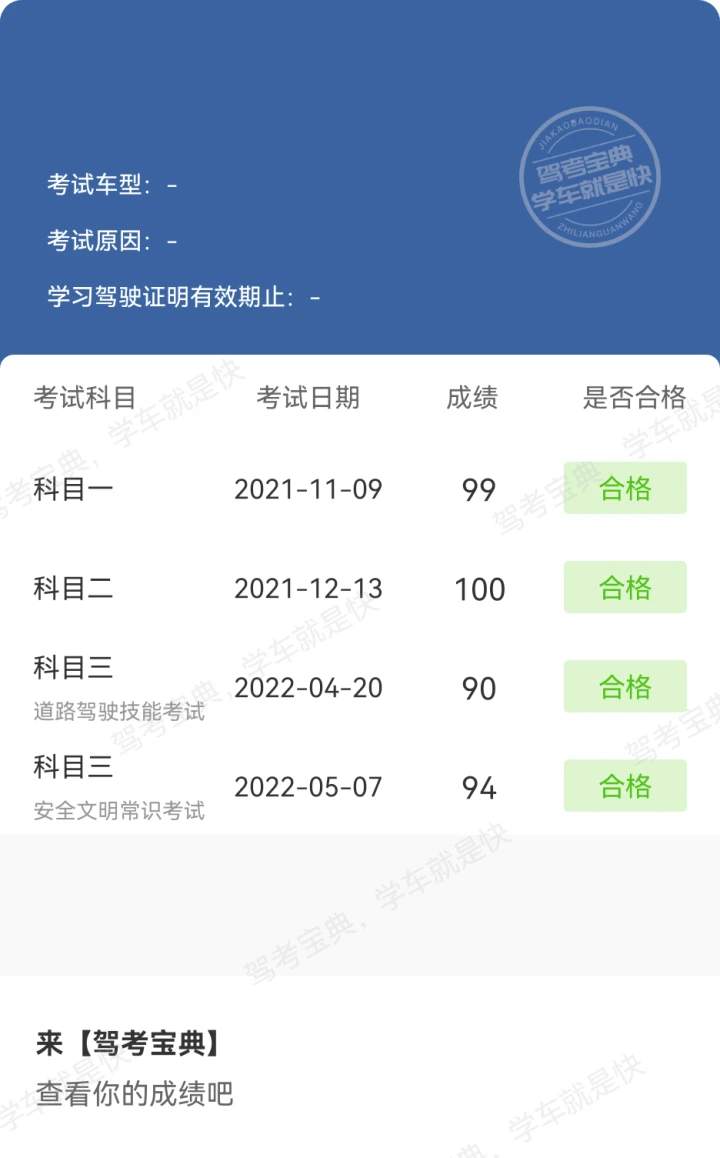 感谢教练耐心教导,驾考宝典VIP也不是白开的,每天反复支真实模拟考试,从科一到科四都是一次过。