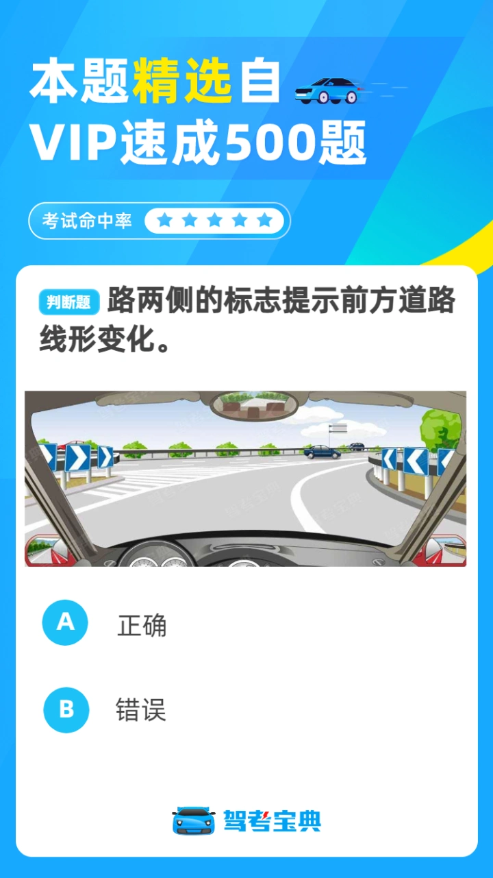 正确答案:A。 VIP专属解析:看图答题,图中两侧的白色箭头是“线形诱导标”,用来引导车辆行驶的。所以选对。 查看链接