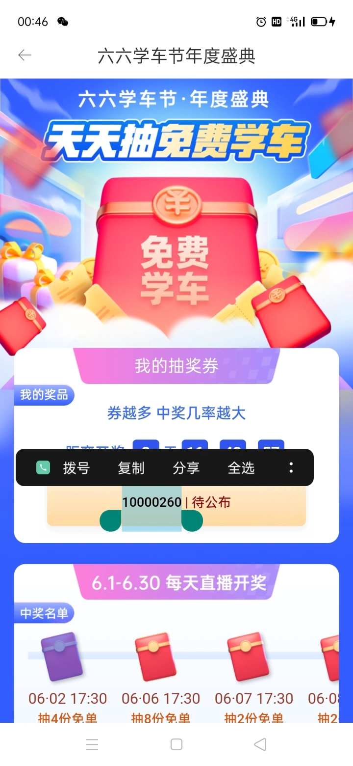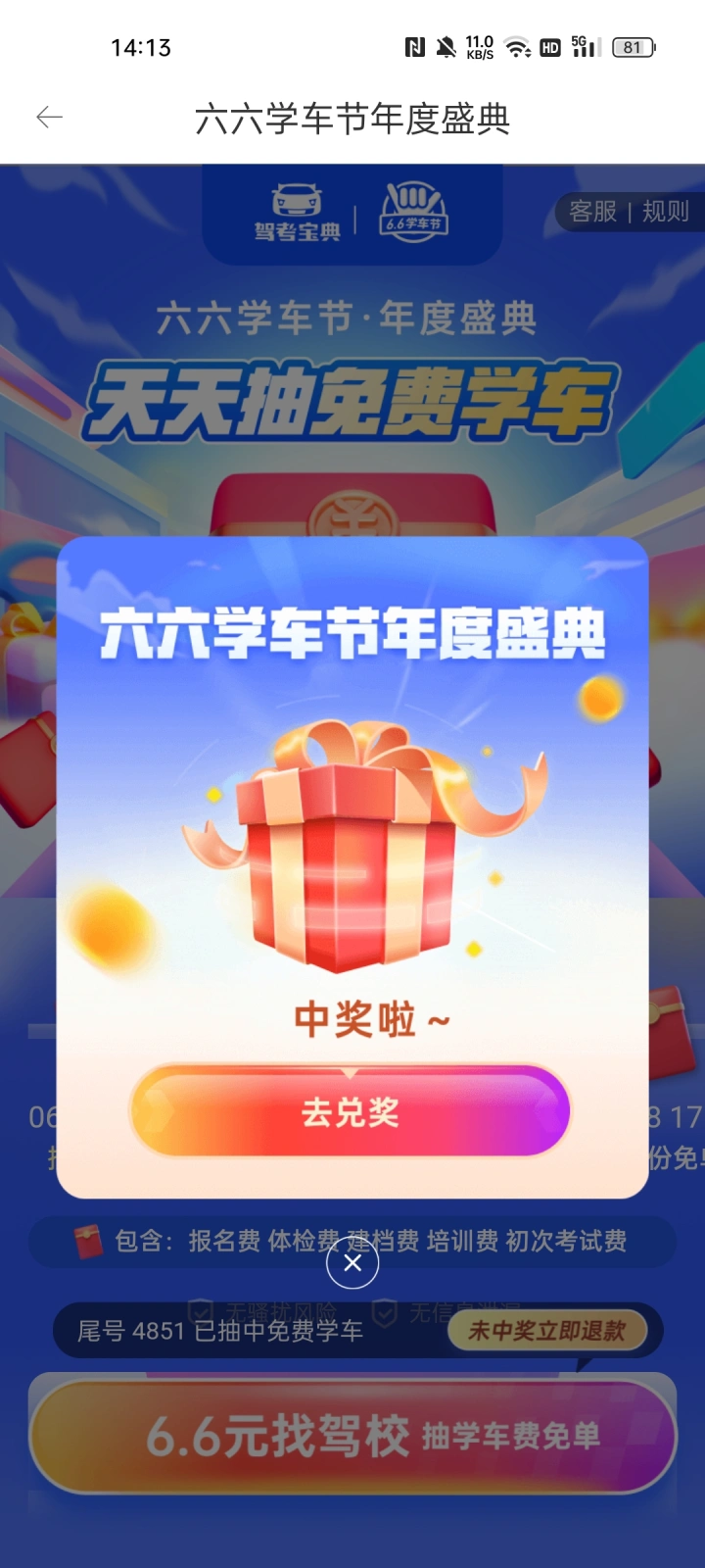参与学车节。6.6确实不中就能退款,我已经参加了好几次了`