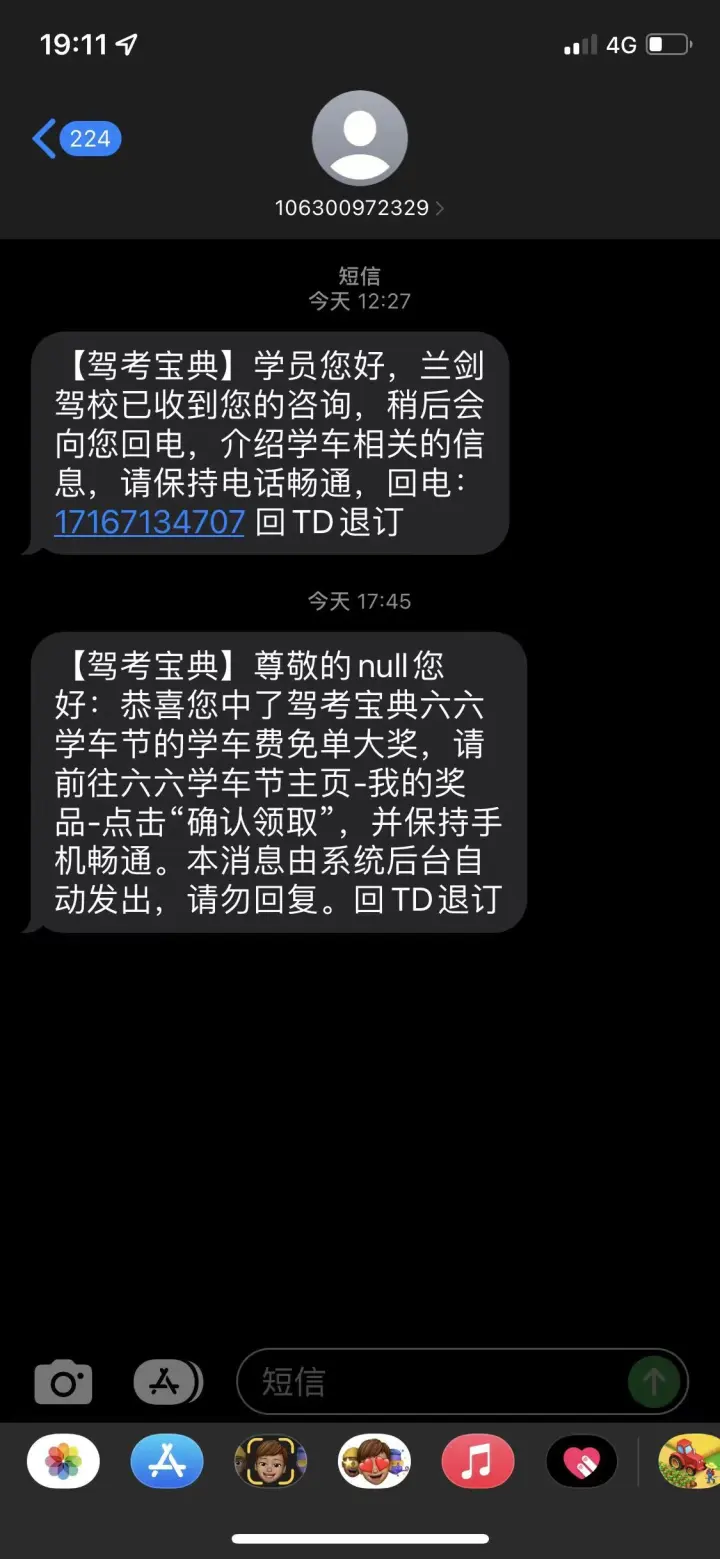 上课的时候收到了短信,2号中的,蛮好的,本来下了宝典就是想好好学个驾照 中奖了可以减免学费,跟我妈说了她开心死了,那必须好好学习一下,尽快拿本,感谢宝典!活动靠谱