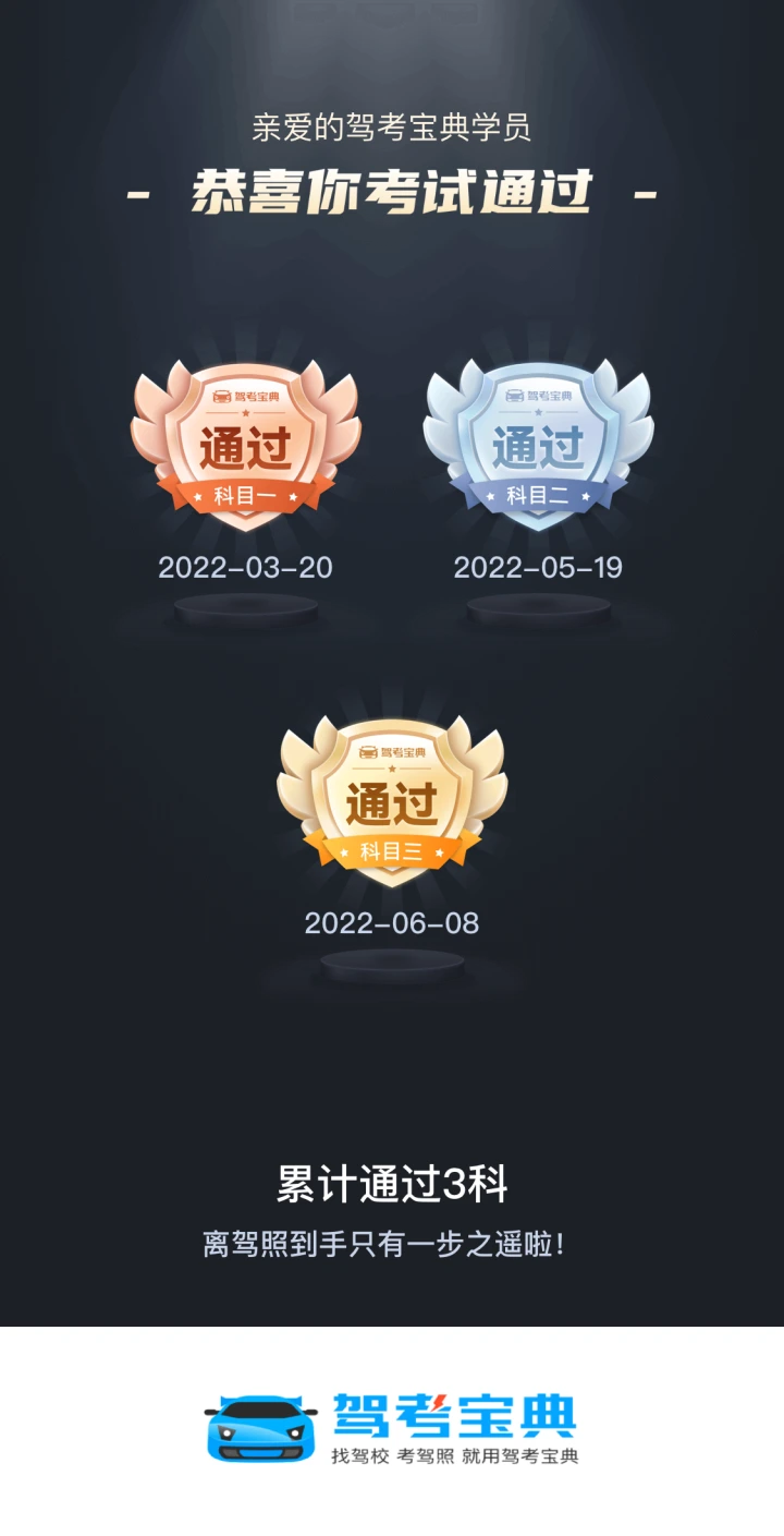 离驾照到手只有一步之遥啦!