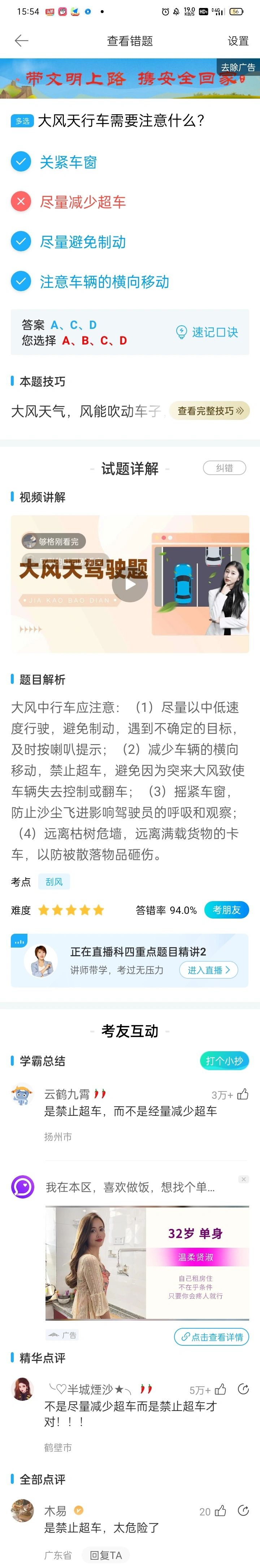 科目四易错的题:大风天行车需要注意的是什么,除了(减少超车)不选,其余都选