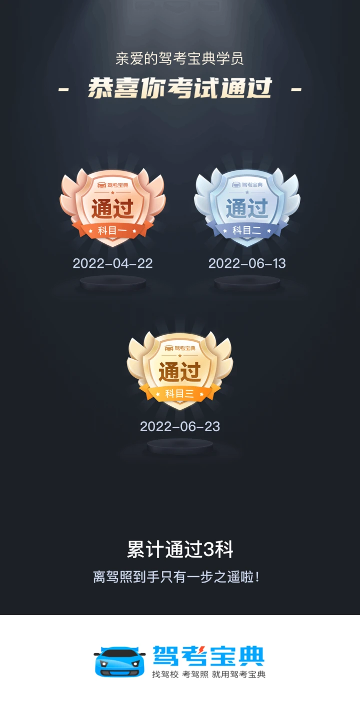 离驾照到手只有一步之遥啦!