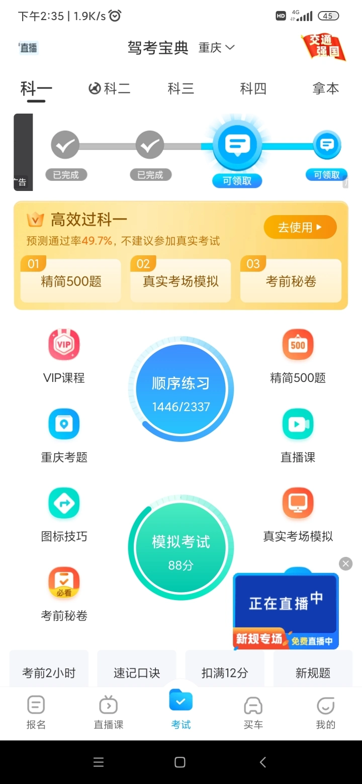 27号一把过 虽然宝典不看好我但是╭(╯ε╰)╮ 开个会员多刷500 和密卷题 还有扣分罚款题还是很香的😁😁