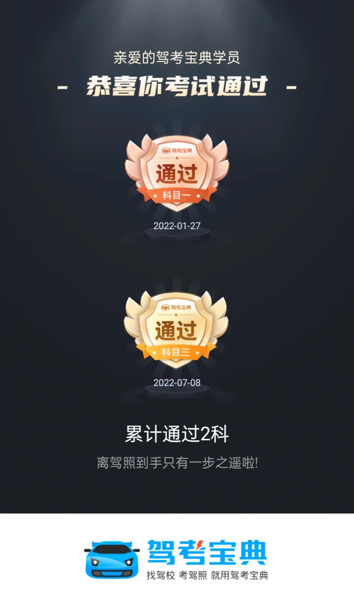 离驾照到手只有一步之遥啦!你太难考了,😄