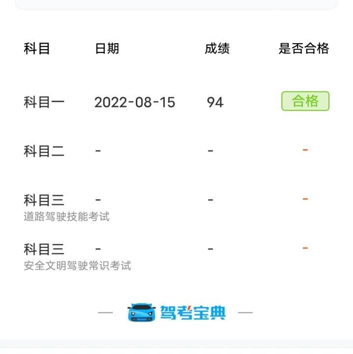 今天考科一,前30题就错了5个,心里咯噔一下,心想:完了,肯定过不去了。过后就在心里给自己打气,今早3点半就起来刷题了,连续3次都是90多,怎么一到实战就不行了,如果考不过,真的对不起自己,没想到下面的选择题就错了一个,'做到最后100题已经可以过了,还有几题拿捏不准,就靠记忆了,没想到都做多了,最后是94分,真的不容易。😃😃😃