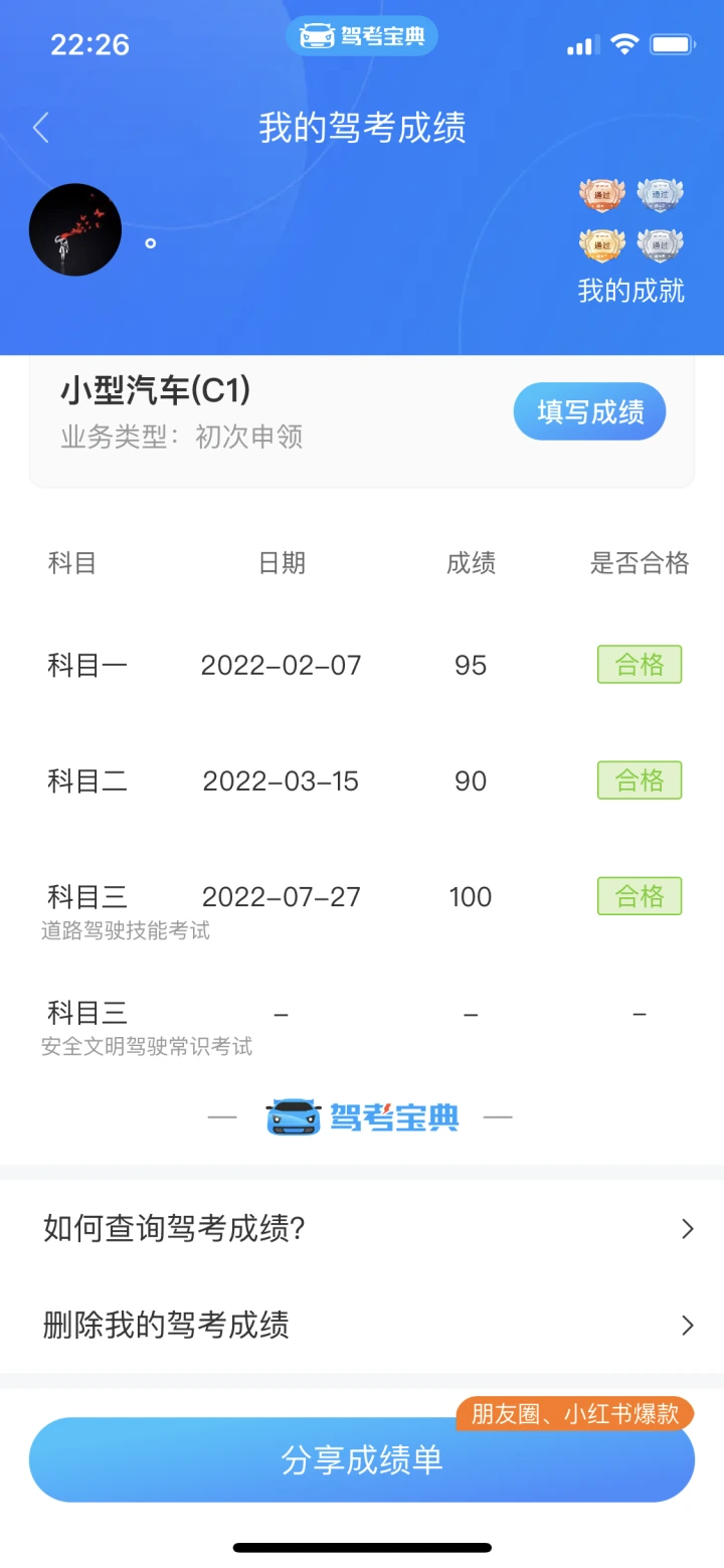 我前面都一把过了,祝我明天也顺利通过拿本