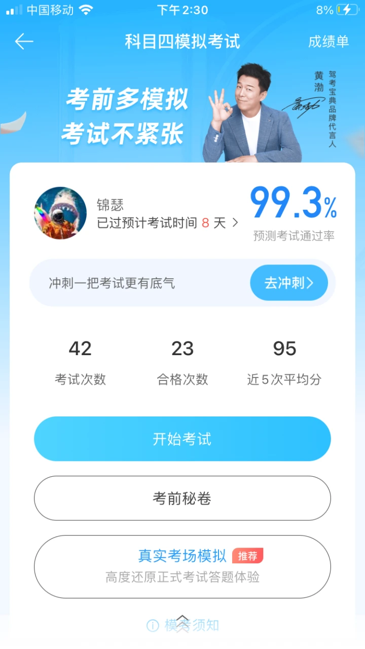 功夫不负有心人! 选择驾车宝典的理由;从刚开始报名就下载了,教练推的向司机根本与驾车宝典没法比较。驾车宝典有比较细致的解释还有视屏讲解、而且还有各个朋友的优秀评论。从模拟的五十分到后来的九十八分,这都是一步步过来的。今天考试终于约上了,给大家转一下运气96分圆满结束!感谢有驾车宝典的陪伴👍🎉
