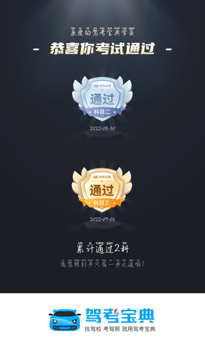 离驾照到手只有一步之遥啦!
