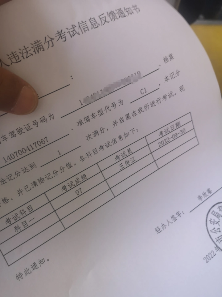 第一次考试没过,心情复杂,满以为自己可以过的,实际操作下来两次80多分,一怒之下,刷了2千多道题,不放心,再刷600道精简题,信心满满,今天考试,突发情况,差点进不了车管所门,但最终皇天不负,顺利入考场,从容考97,发文大家共勉,加油!