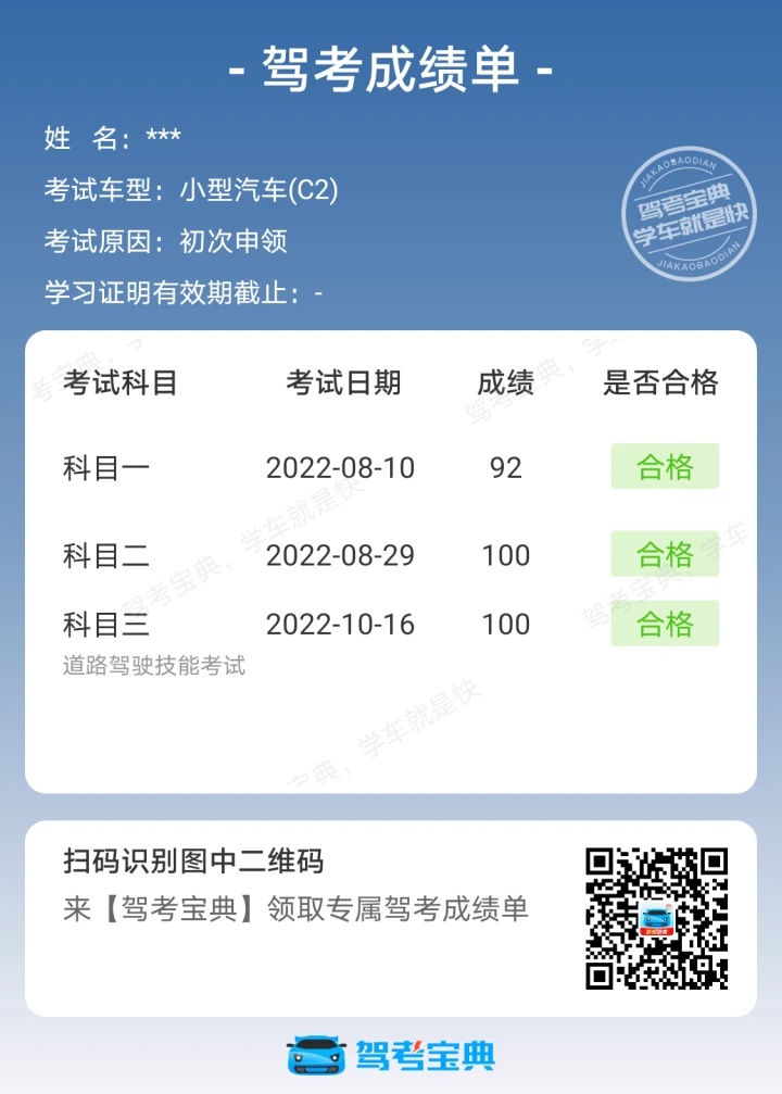 离驾照到手只有一步之遥啦!还有一个科目四喽