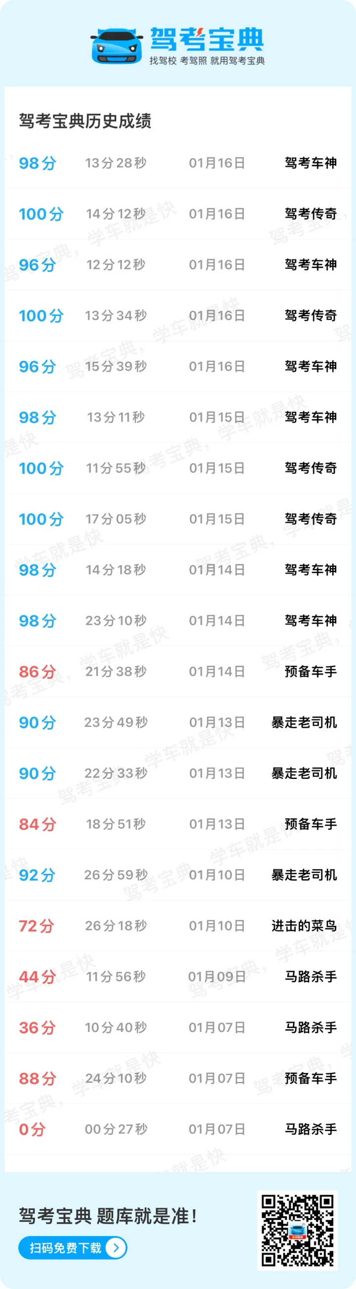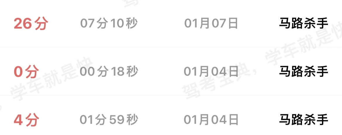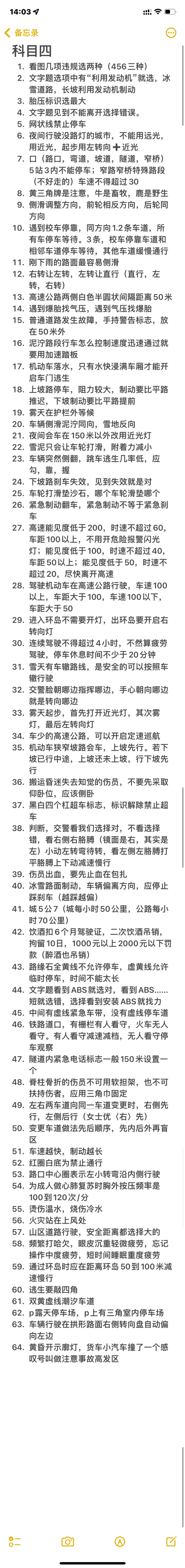 分享下考试经历吧! 说实话都不是很难,但是一定要有好的心态。我就是心态不太好! 科目一,那时候心态挺好的,考试前一天做了8套模拟卷,第二天就过了,说实话不知道怎么过的! 科目二,它考的是点位,点位非常精准,难的是什么?是你早一点晚一点都不行。如果你特别会调整可以。我就不是,我一次心态挺好的,到了坡起两把都挂了。从那以后心理状态就不好了,再去考试特别紧张,但是上了车就好了,很顺利过去了,但是有一个插曲就是反库我打晚了,就我感觉压线了,调都来不及了,但是系统没说话,我就可能贴边过去了?但是真的很玄,我直接就紧张了,之后就通过了。 科目三,它没有科目二难,但是细节非常的多!但是记住点位和线路没问题的,记得方向盘一定不要握太紧,不要老动方向盘,打完转向灯一定要多等一会在动方向盘,大概5到8个数就行。有科目二没过的经历我科目三更紧张了,天冷也紧张就打牙颤。我考试前一天去练车了,但是考场也有考试的,当然咱们文明道德的没影响考试,在外围练了练,我看很多都挂掉了,所以到我考试我很紧张,我是第一个考的,还行车少,阻碍少。上车了就不紧张了,但是起步闯动扣了5分我一下就慌了,我就感觉是不是要挂了,但是静下来,起步想操作就好了,告诉自己一定要慢一定要稳,就过去了。 科目四,由于最后一个项目了,所以我给自己的压力更大了,题库里是1701道题,真的做不下去,想玩手机。我也没好好看过,直到考试前四天我才开始认真。最开始不愿意答题就把精简500答了,然后去做模拟,都做完后我发现真的有用。然后我就统计了200道错题,开始刷错题,三套模拟。再看错题和知识点,三套模拟。最后考试前一天,我特别懈怠真的,也不知道为啥就看不进去了,挺着刷了五套模拟,看了错题。考试早上看了一遍知识点。等待过程中真的很煎熬,开始考试时候,但是思考一下都能答对。开始就两个不会的,没有答,空下了等着最后蒙一下。最后最后数了数算不会的还剩下五个题,够了不答也过了,想过交卷。但是琢磨琢磨反正也过了,看看什么题吧,后边三道题很简单答对了,剩下不会的两个,蒙对一个,蒙错一个。 这个就是全部碎碎念和经验!说实话心态很重要,最后一定要相信自己,加油呀,好运给你们!