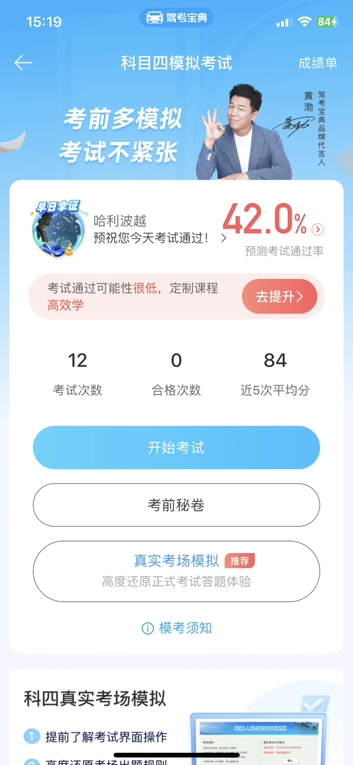 模考没上过90,最高分88,通过率42%。今天现场一考98,真实考试比模考简单