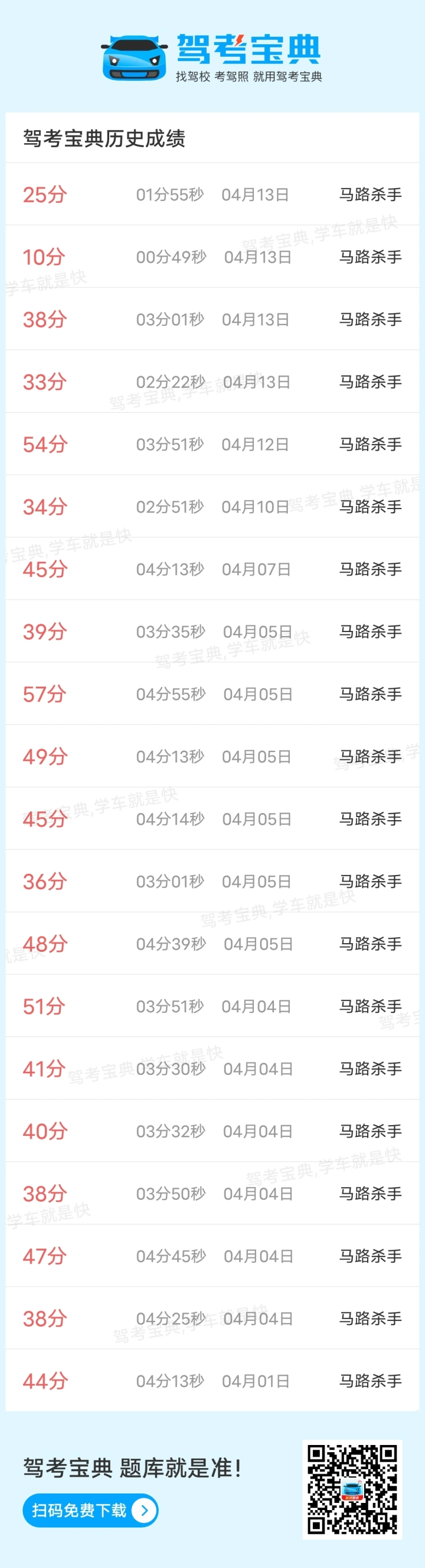 说出来有点不敢相信,从月初到现在一直没有90分以上,每天抽空就刷题想着今天去考科目一可能有点悬可能要凉凉,诶嘿!结果没想到考过了😜。明天就开始去连科目二去,还有就是加油!各位还没有考科目一的朋友们,考试的时候一定要保持一个良好的心态,不要紧张,冷静!相信自己!你是最棒的!加油!