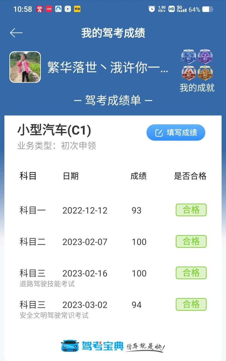 今天科二一把过,满分,感谢宝典,这些技巧都很有帮助。