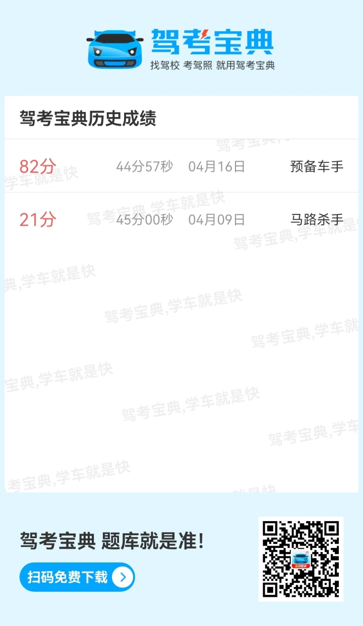 这个APP做的还不错,激动的心💗太难了,交警队的库题会变动啊!大家务必要文明礼让开车出行不扣分,祝大家顺利拿证!