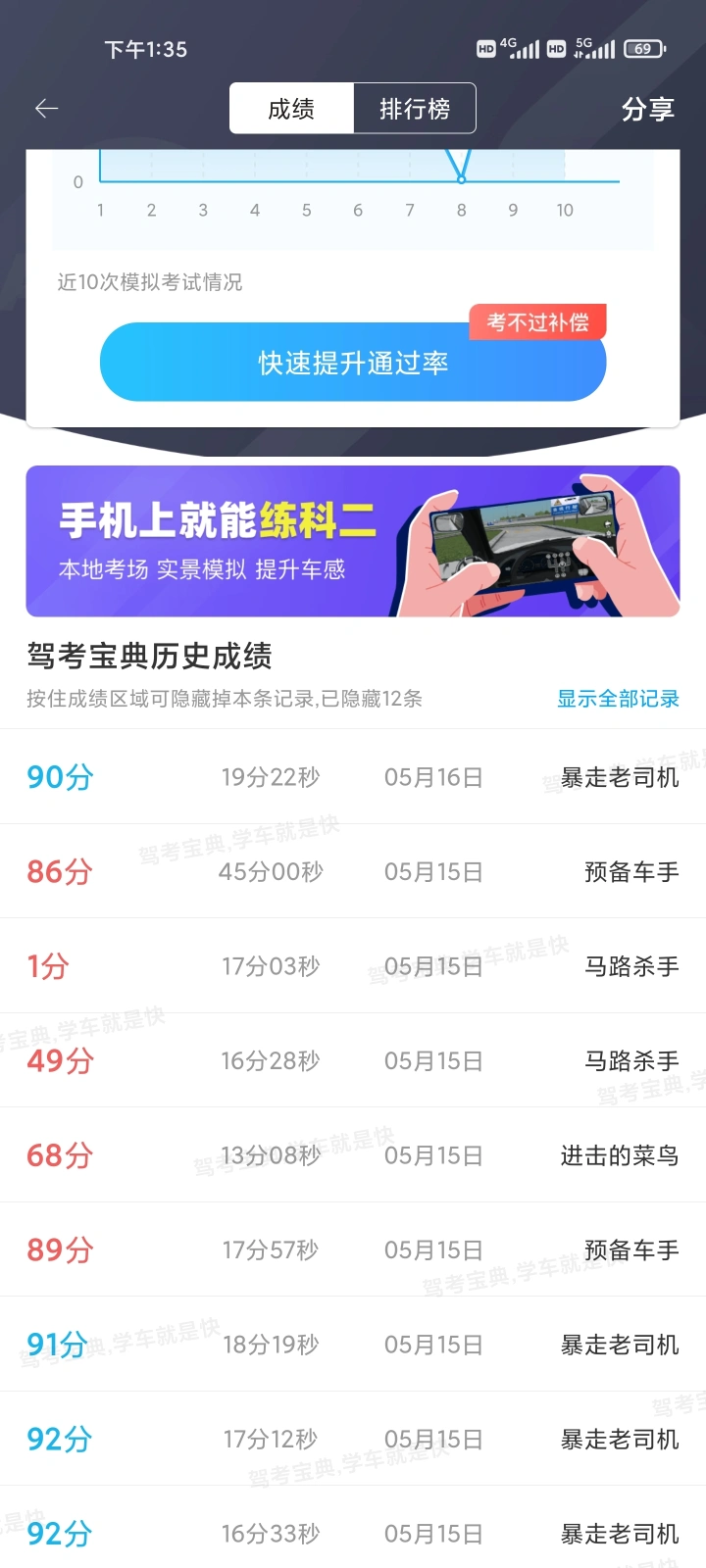 平常考85就能考试了,根本没有英文题交警手势,考试题目比模拟题目简单多了。