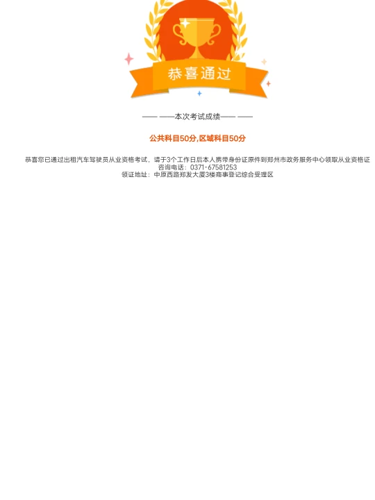昨天考试已过,全国和区域都是满分50分,坐等拿证。从这次考试分享一下心得,全国题不算太难,区域题有一定难度,我是在驾考宝典里每项练了差不多40多次,考前多看错题,郑州区域题最易出错的就是服务质量考核扣分项和地方距离题。前项没有捷径,把20,10,5,3,1项都记清晰,后项我总结了一下,巩义所有+裴李岗+三皇寨+韩国皇陵+黄河风景判断是对,其它考距离题都是错,我的分亨就是这,希望对大家有帮助。