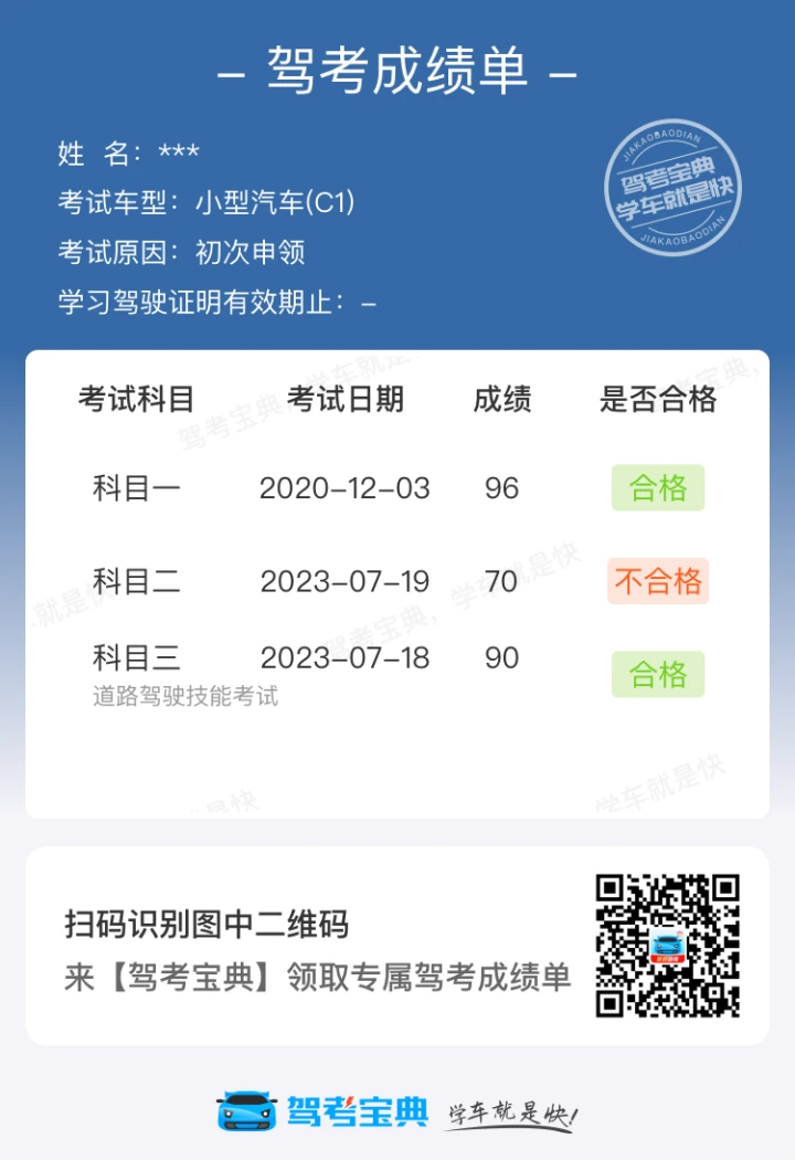 浅浅记录一下驾考成绩吧,科三通过~ 科二挂了😔 没事,还剩科二科四了,加油💪