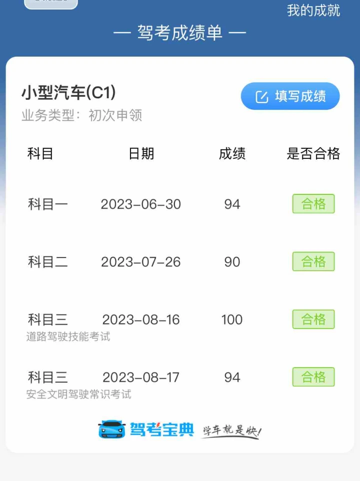 再见了驾考宝典! 科一前一天才93分,考试94一把过! 科二练了7天90分一把过 科三7天100分一把过 科四裸考,考了十三次12次70分一次90 考试94分一把过! 传好运喽~