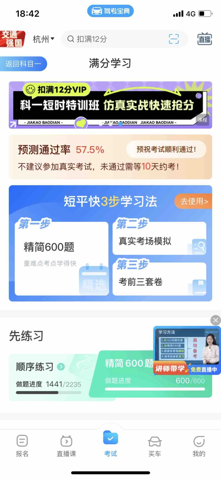 第一天模拟50分第二天80分,第三天90分 看了三天直接去考试96过了。回来谢谢典,600道精简题非常有用,就看了这600题,今天考试全都是里面的题