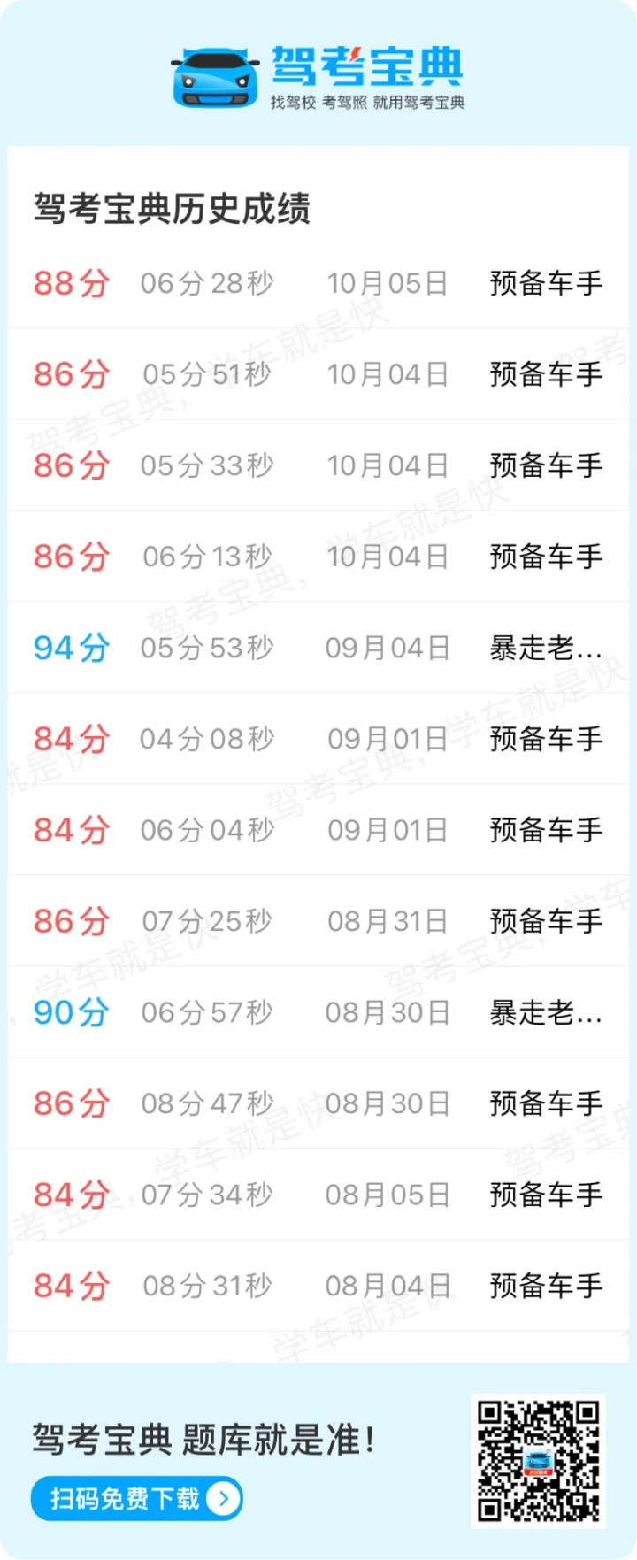加油,我也科四!马上考试