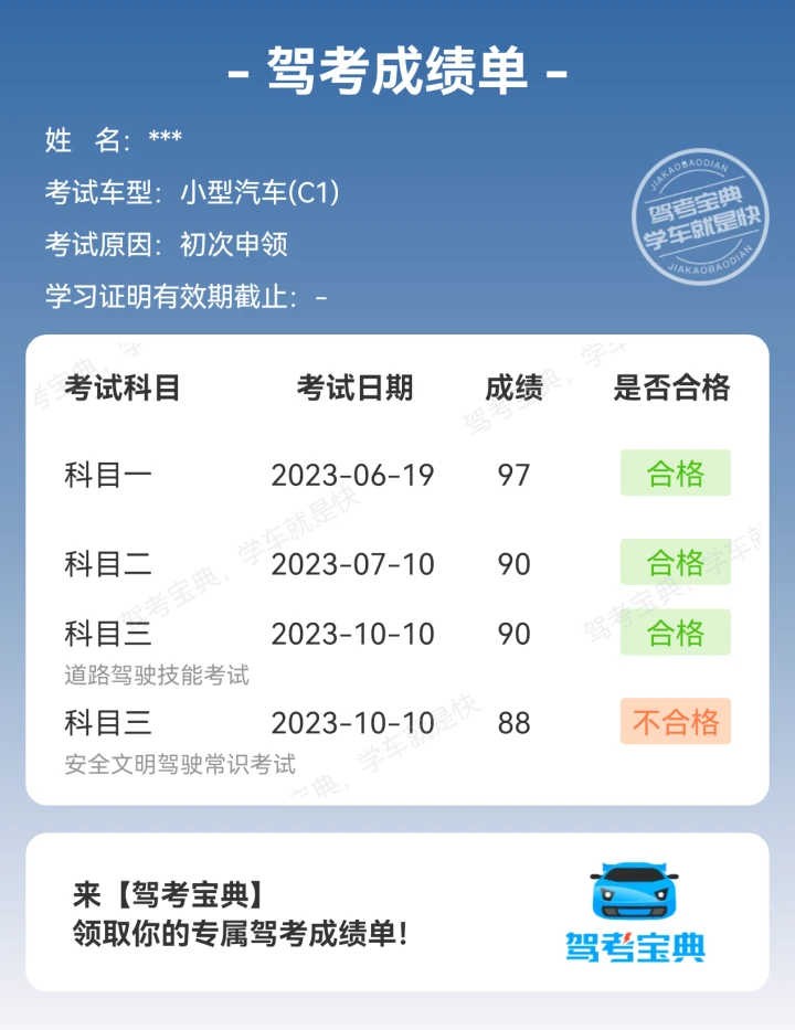 科一科二一把过。科三挂了一次,科四。第1次也挂了😭😭