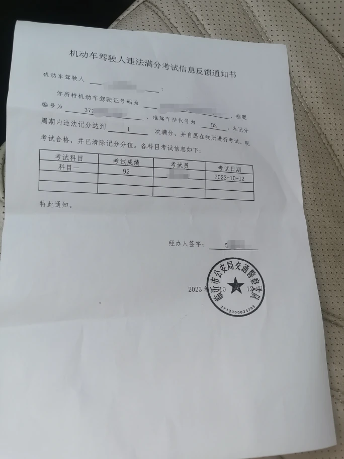 酒驾扣12分考试,B2题库4000多。合格不错😊