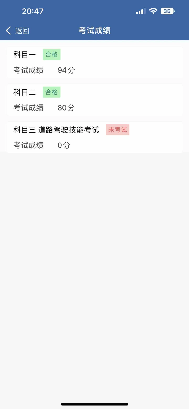 80 分险险过,不过我也还是很开心了,第一次考科二,能过就行。😛😝 第一天强训是上周六,我永远记得我早上六点起床,一出门就赶上了西安的雷暴雨加大雪,天气糟糕透了,考场练车的学员冻的瑟瑟发抖,饿了就吃泡面,一直练到很晚才回家,回家以后倒头就睡,特别辛苦。 然后今天考试的时候听到了成绩合格四个字时,真的特别激动,嘴角怎么也压不住了,这几天的辛苦值了,我对得起我自己这几天的付出! 出考场后看到好多熟人都挂了,有的女生还在哭,我没有取笑也没有故意显摆,我很能理解,因为挂科的人可能觉得连续这么久起早贪黑天寒地冻的练车,得到的却是这样的结果,一定很心酸😔唉,心疼挂科的学员,也想对他们说一句,别泄气!加油!下次一定一把过!加油加油!