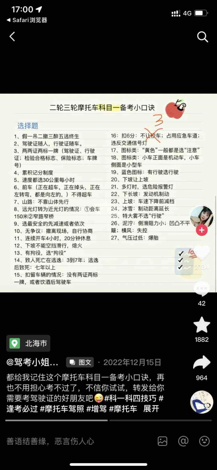 科一科四一把过,前来谢典。 有把握的先做,不确定的就点“下一题”,做完所有再回头来想没把握的,这样心态不会绷,祝后面的朋友旗开得胜😁
