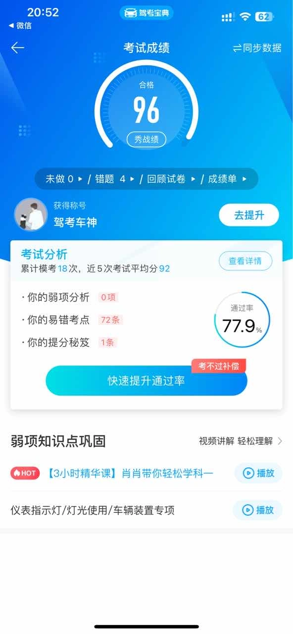 科一90 科二90 科三100 科四94 全部一把过已拿证