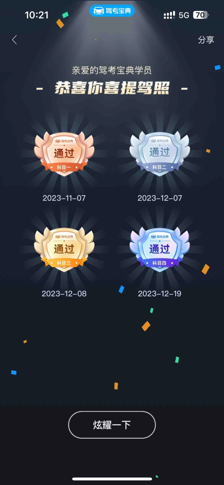 科一到科四一把过,还没拿驾照的赶紧过来接好运😃 一定要多刷模拟考,考试的题和模拟考的一样,多刷几次就可以过了,祝大家考试一把过😊