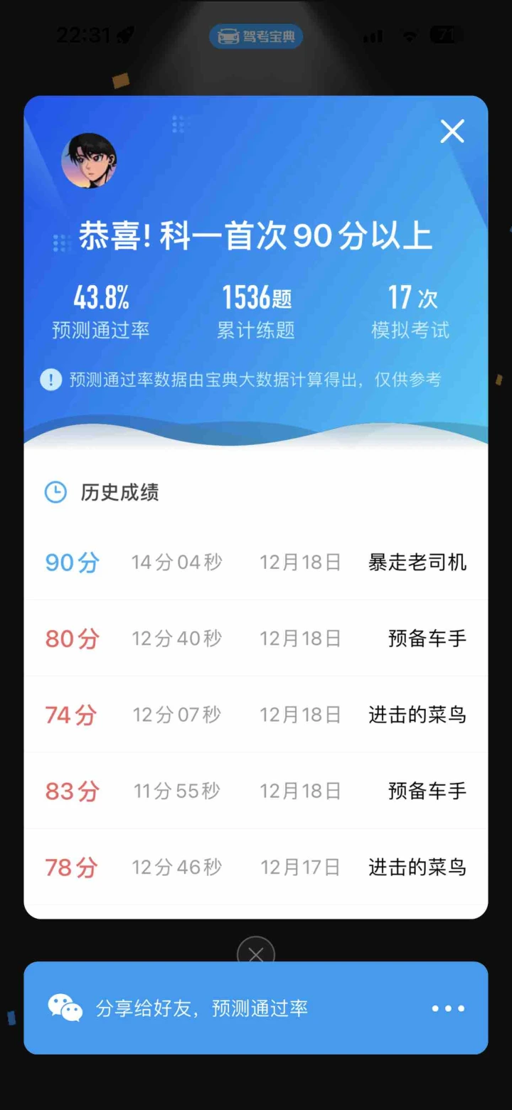兄弟一次及格你去考试感觉几率不大,得多刷