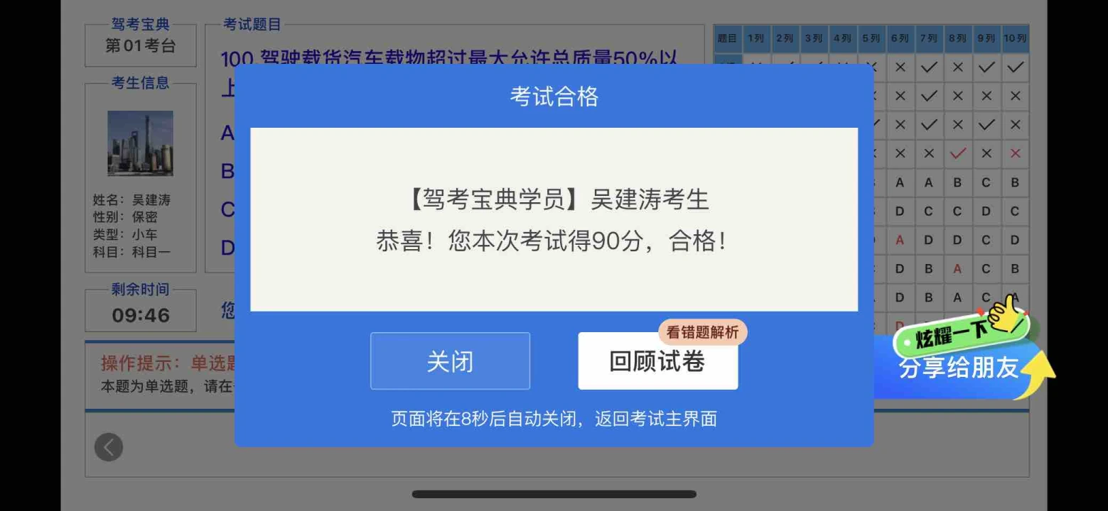 昨天1月16日通过科目一考试一把过的心得分享给友友们。典典文档是经典之作。 1—首先听老师讲课认真做笔记。 2—正在确牢记答题技巧。 3—然而开始刷题500道精简题。 4—错题认真分析原因。 5—开始刷题、一遍一遍多刷题。 6—模拟考试、也是一遍又一遍的模考。 7—模考90分以上5次,可以预约考科目一了。我是科目一昨天一把过。太爽了