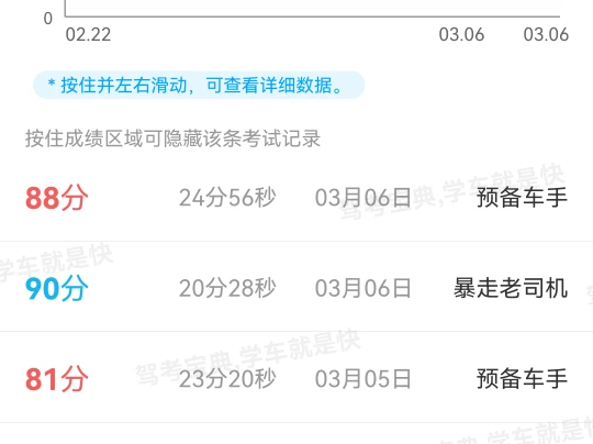 典典我正在学科一 我暂时还没有预约考试 我现在的模拟考试成绩是 不稳定。 我觉得扣分题/罚款题/图标题……最难…… 还是要多刷题刷题刷刷题。