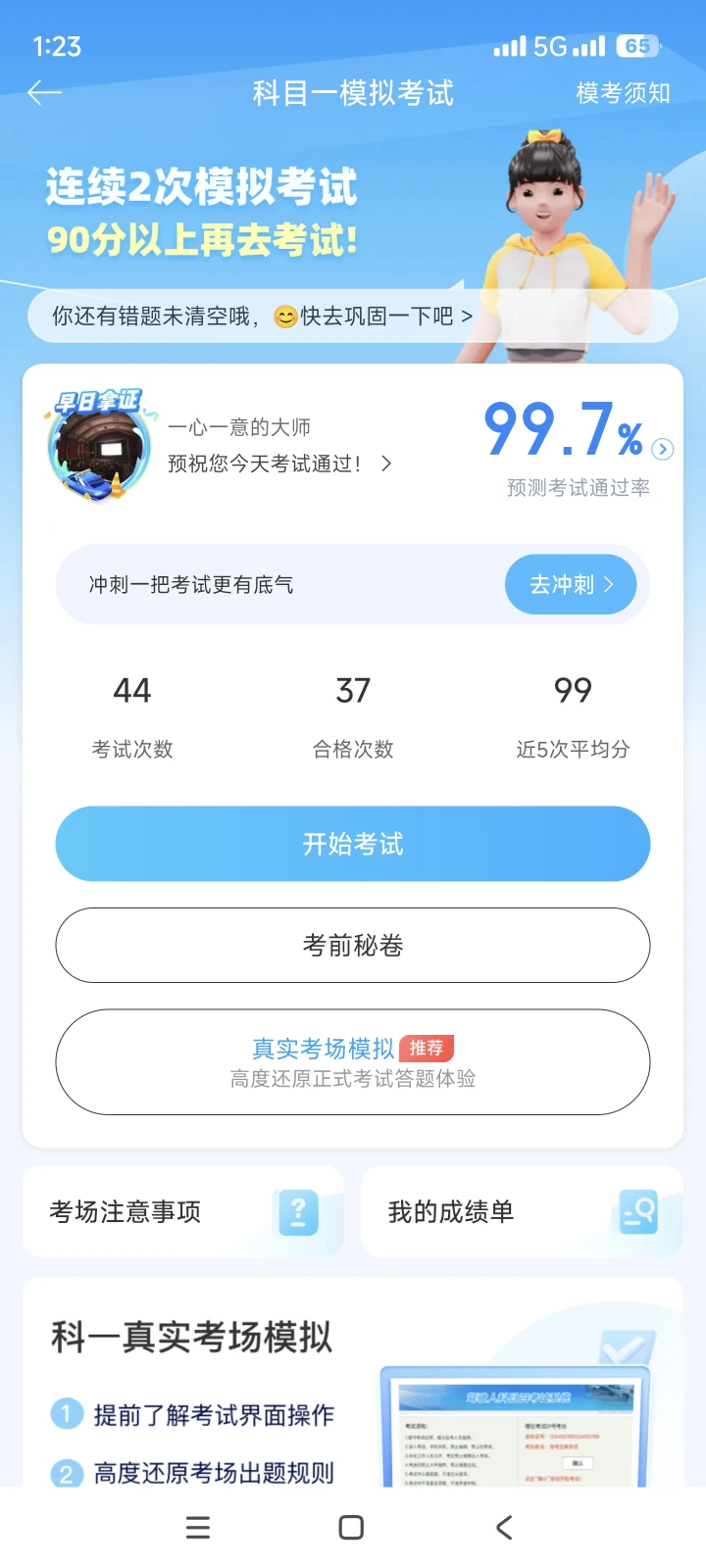 宝典都刷100分的,结果考试都是考的我平常没怎么刷到过的,考试客车的,超载的,超分,违章扣分的全都给我整上了,考场的题比这个坑多了,错了五道之后,整个人脑子都一片空白,题目差点都看不来了,会紧张,容易挂科,把会做的先做,不会的先空在那里,不然很容易噶的😂😂