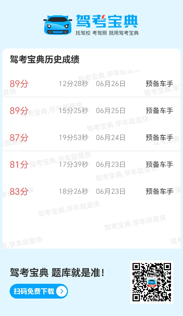 谢天谢地 五次模拟考都没过 考试的时候居然过了 我抽到的题比较难很多扣分的 还有三道交警手势 还有很多罚款...