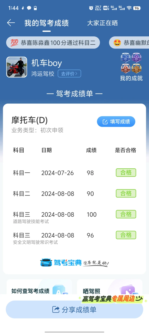7月19报名,8.8号下本,历时20天拿下,全部一把过,科二科三前一天临时抱佛脚练了俩小时居然过了,哈哈哈,可以的,特来感谢,顺便付上我的考试↓得 对了,包头的小伙伴考完科三可以立马考科四,科四增驾的需要带好驾驶证哦!!!记住了 科四考场在前排大楼的最西边,进屋拿身份证直接考就行,祝大家顺利拿本#晒驾照