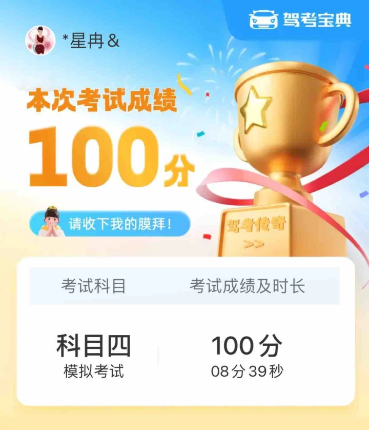 今天科目四一把过,5分钟考完,秒答,顺利拿驾驶证😁