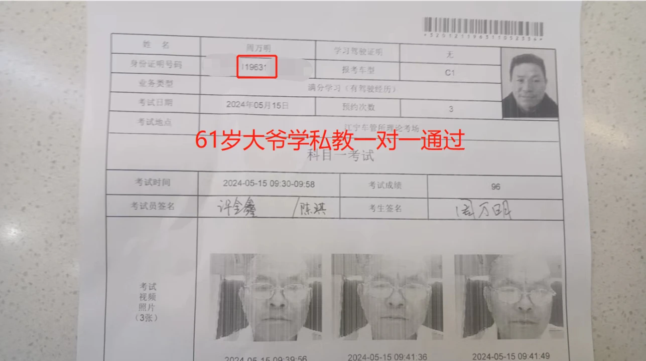 我今年61了,趁现在家里农忙搞完了赶紧来学车了。 我小学学历,学历也不高,文化水平比较低但是还是考过科目一了。刚开始学的时候很困难没有做对几个题,花了半个月时间不合格过一次。多亏了驾考宝典的私教的老师,专门来教我,一道一道题的教,直到把我教会才下课。最后考了96分,真的很感谢私教的老师们! 科目二跟科目三是上车操作,不需要考文化知识,只要会开车就行,对于我这种文化水平低的人来说,好考多了,马上要考科目二了,加油!